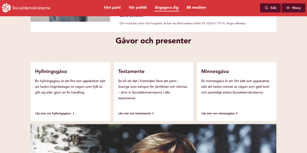 På Socialdemokraternas hemsida säger man bland annat: ”Skriver du in Socialdemokraterna kan du se till att dina pengar bidrar till att det även i framtiden finns ett parti i Sverige som kämpar för rättvisa och jämlikhet för alla.”. Magdalena, den korrupte Baudin och ”mannen som inte når ända fram i vare sig längd eller intelligens”, Morgan Johansson, tycker alltså det är bättre att de får pengarna än dina anhöriga.