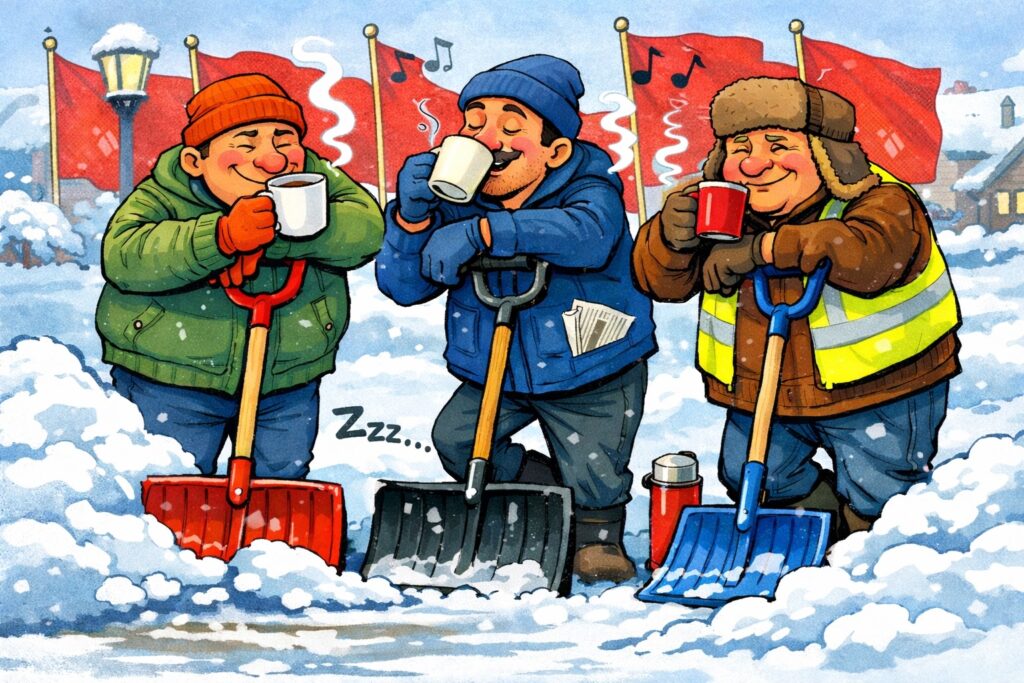 Det senaste lågvattenmärket (som fick oss att besöka staden var att anisokrona Socialdemokrater på sin Facebook-sida hävdar att snöröjningen i kommunen inte är solidarisk. En sosse hävdar bestämt i ett inlägg på Facebook att det skottas bättre och mer på gator och vägar som leder hem till Torkild.